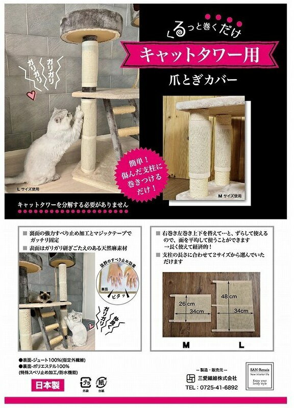 【在庫限り】三愛繊維 巻くだけ爪とぎカバー キャットタワー用 アイボリー L サイズ