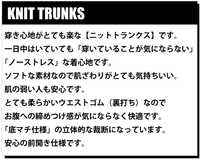 KNIT TRUNKS 穿き心地がとても楽な【ニットトランクス】です。