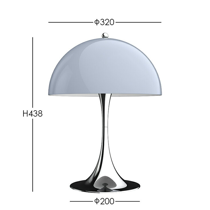 ヴァーナー・パントンが1971年に発表した、テーブルランプのアイコンとも言える「Panthella パンテラ」の直径40cmと 「パンテラ ミニ」の直径25cmの中間サイズです。