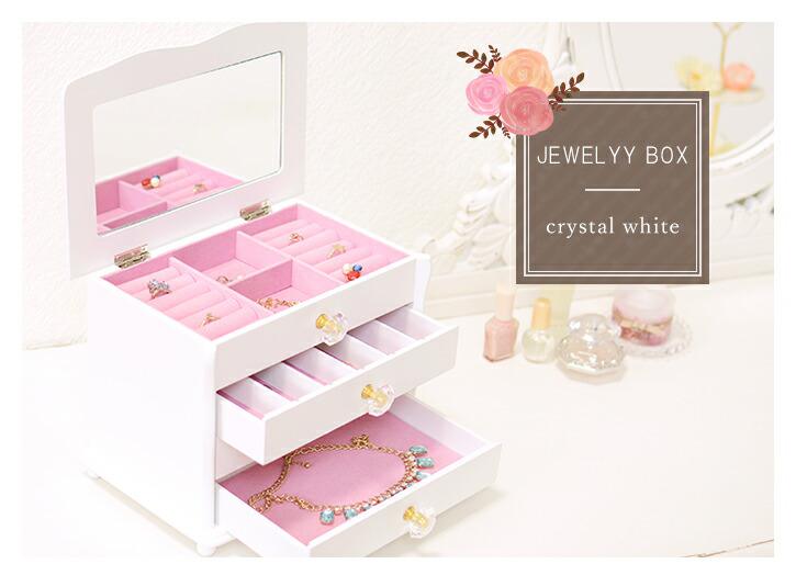 コンパクトなのにたっぷり収納、クリスタル型の取っ手が可愛いジュエリーボックス。