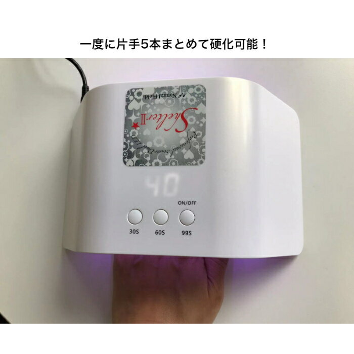 ハードジェル、ソークオフジェルのどちらにも使える、 2種類の波長を同時に照射できるデュアルLEDを装着した、 センサー・タイマー付き24Wシンプルライトです。