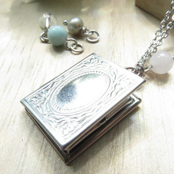 パーツ、チェーンともにステンレスを使用した珍しいブックモチーフのロケットペンダントです。